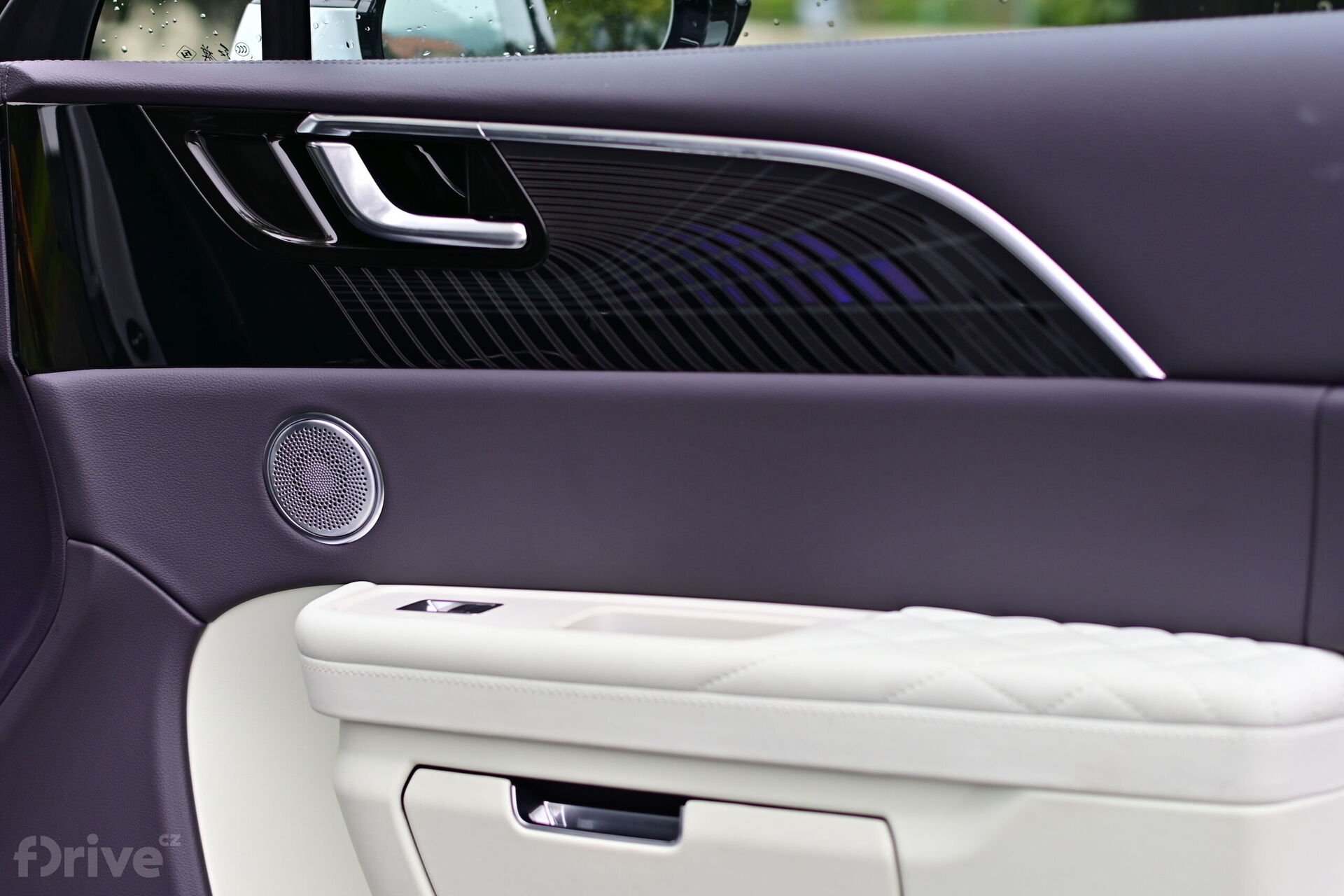 - Další prvky: rekuperace, panoramatická střecha, masážní sedadla, 16 reproduktorů, filtrace PM2.5