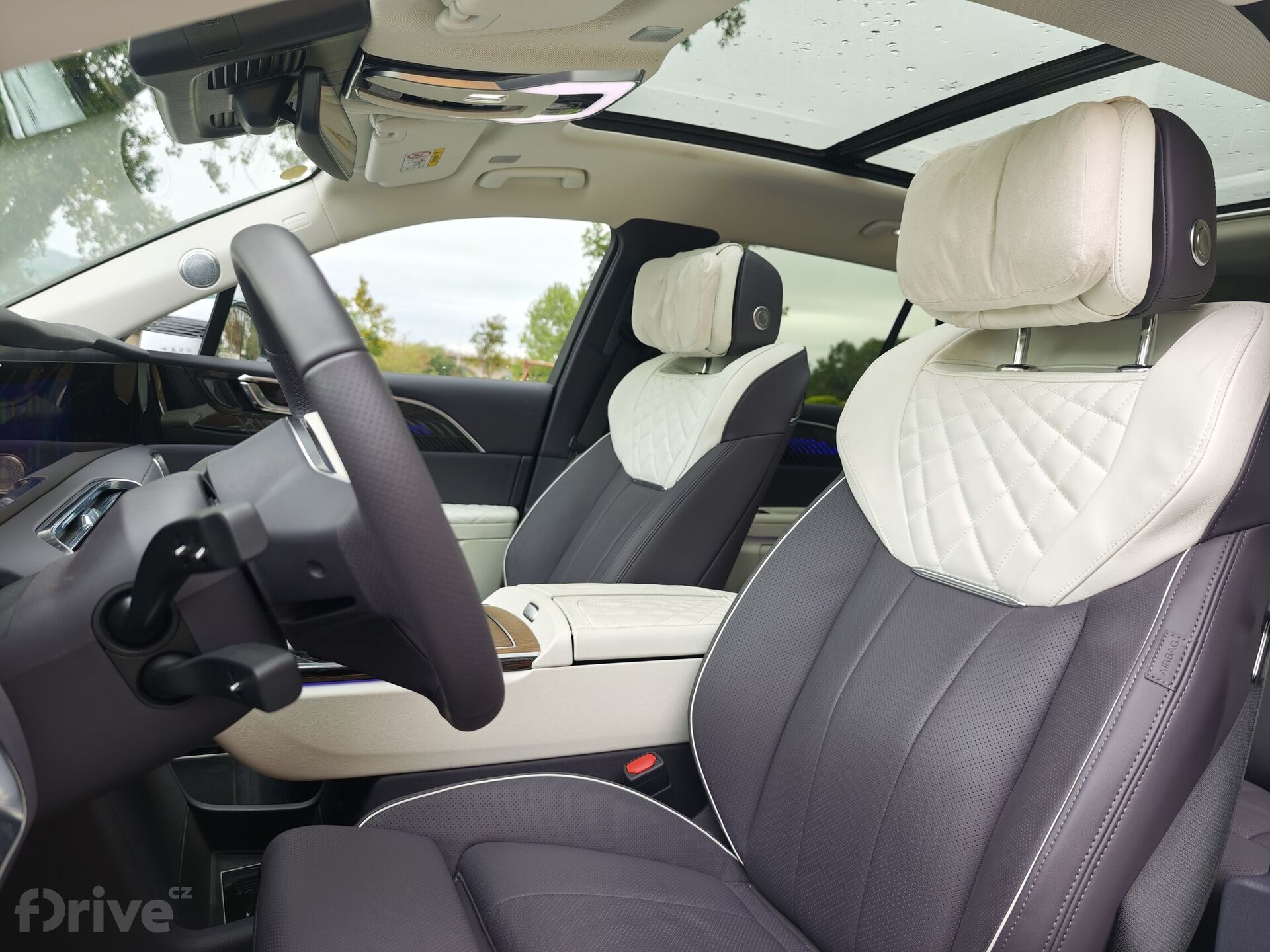 Interiér vozu působí jako luxusní salonek na čtyřech kolech. Každý detail je navržen s důrazem na estetiku a pohodlí – od kvalitních materiálů přes precizní zpracování až po ergonomicky tvarovaná sedadla s vyhříváním, ventilací a masážní funkcí. Díky velkorysé šestisedadlové konfiguraci mají všichni pasažéři dostatek prostoru a soukromí. Atmosféru uvnitř dotváří ambientní osvětlení, prémiový audiosystém BOSE a nejmodernější digitální rozhraní s několika velkoformátovými displeji.
