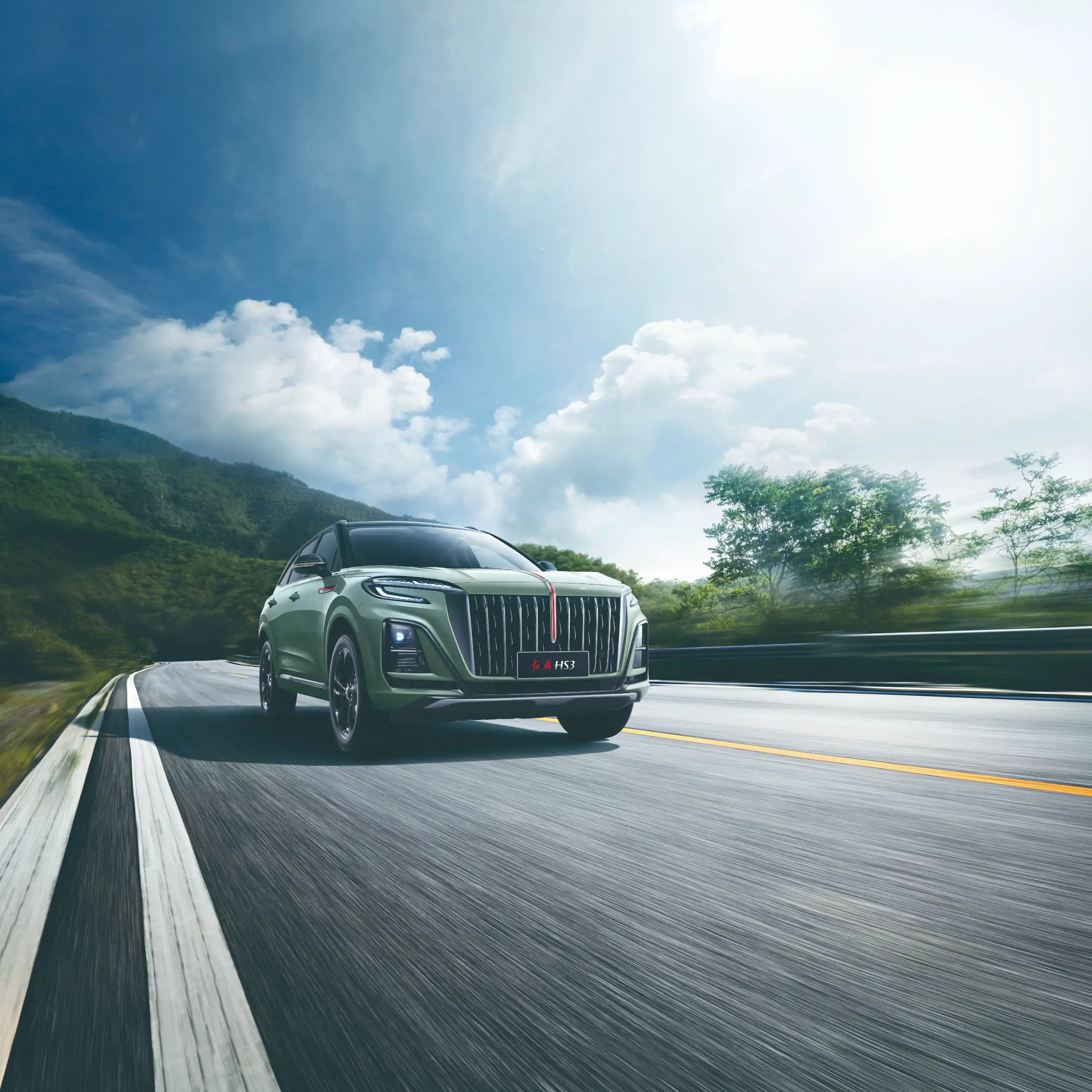 Hongqi HS3 ztělesňuje moderní designový přístup, jenž elegantně kombinuje tradiční DNA značky Hongqi s mladistvým, svěžím a energickým vzhledem. Přední část vozu ve tvaru „létajícího křídla“, doplněná o výrazné světlomety, vytváří charismatický a nezaměnitelný dojem, který okamžitě přitáhne pozornost.